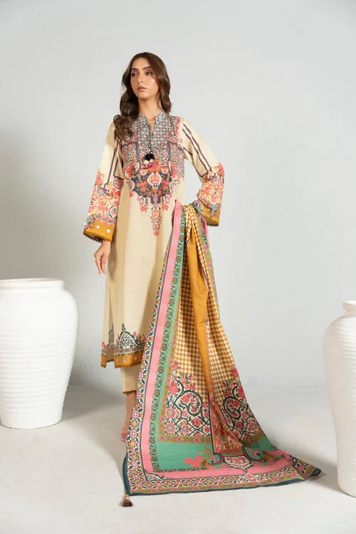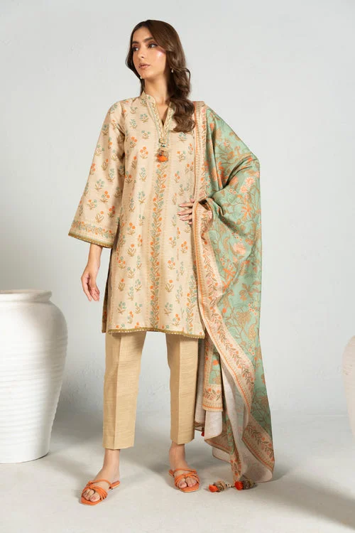 Stylish 3pc printed beige color khaddar suit with matching khaddar dupatta Rs:3,990 Rs:3,290.