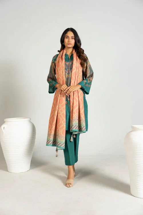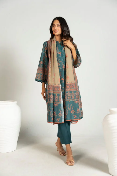 Teal color 3 pc printed khaddar suit Rs:3,990 Rs:3,290.