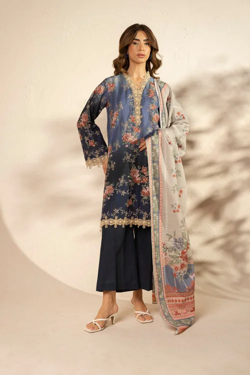 Printed 3pc blue suit with printed khaddar dupatta Rs:3,990 Rs:3,290.