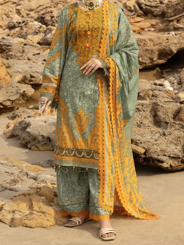 Sage green lawn 3piece unstitched suit PKR:5,950 PKR:4,462 only.