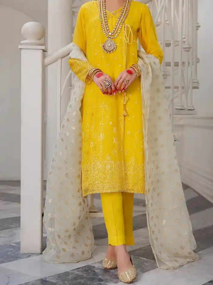 3-pc Organza yellow unstitched suit Rs:11,750 Rs:5,875.