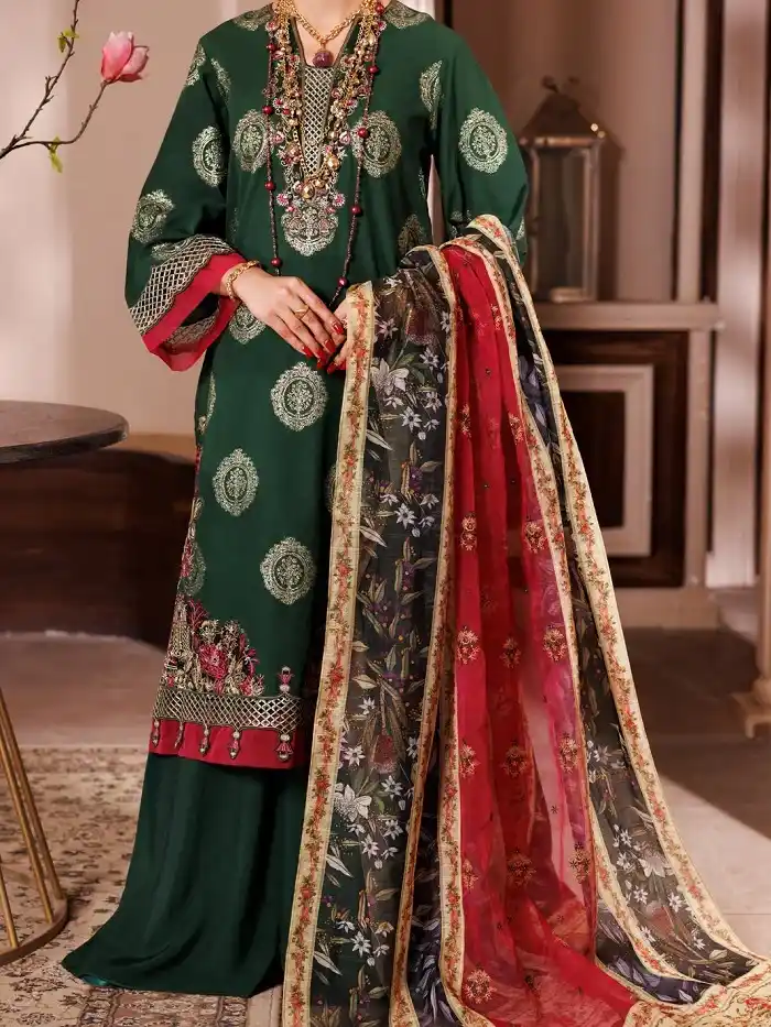 Green self jacquard 3 piece unstitched suit PKR:11,750 PKR:5,876 only.