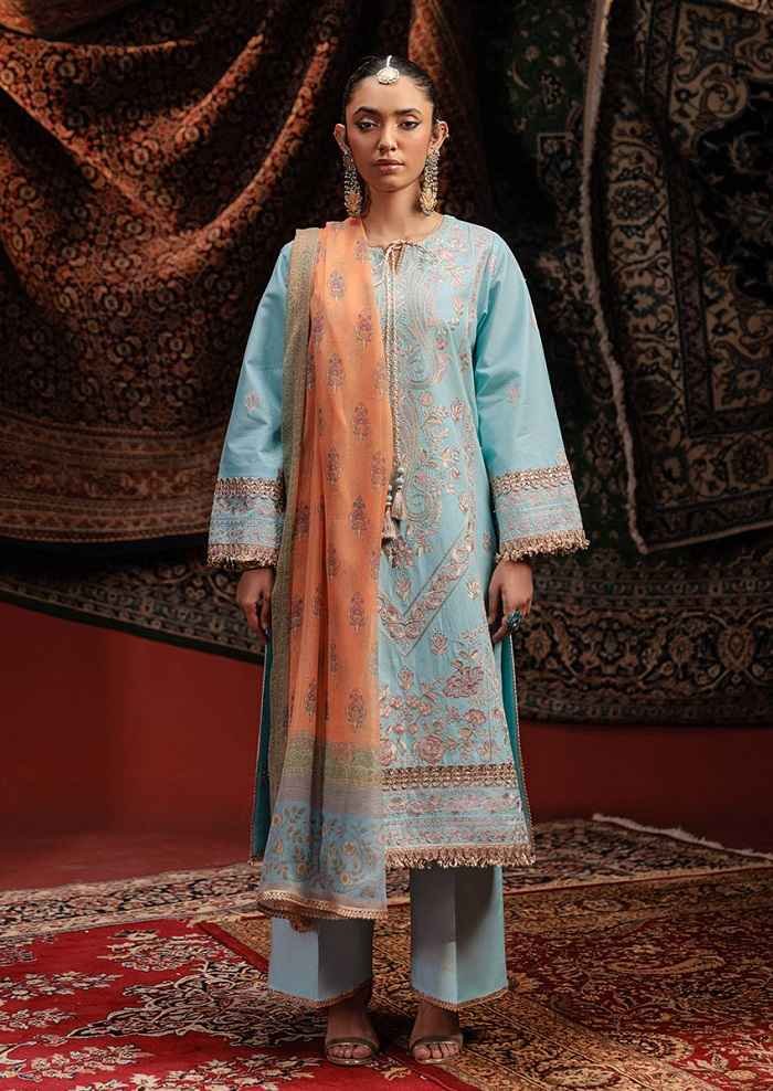 Blue embroidered lawn unstitched 3-piece suit for women Rs:7,980 Rs:6,384 only.