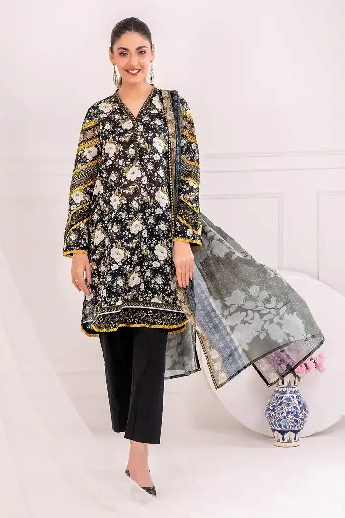 Lawn digital printed black color 3 piece suit Rs:4,790 Rs:3,353 only.