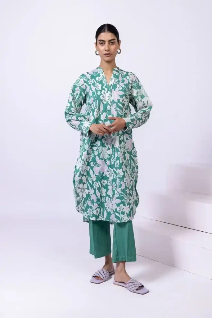 Floral printed green color ladies summer kurta, pants Rs:4,000 Rs:2,000.