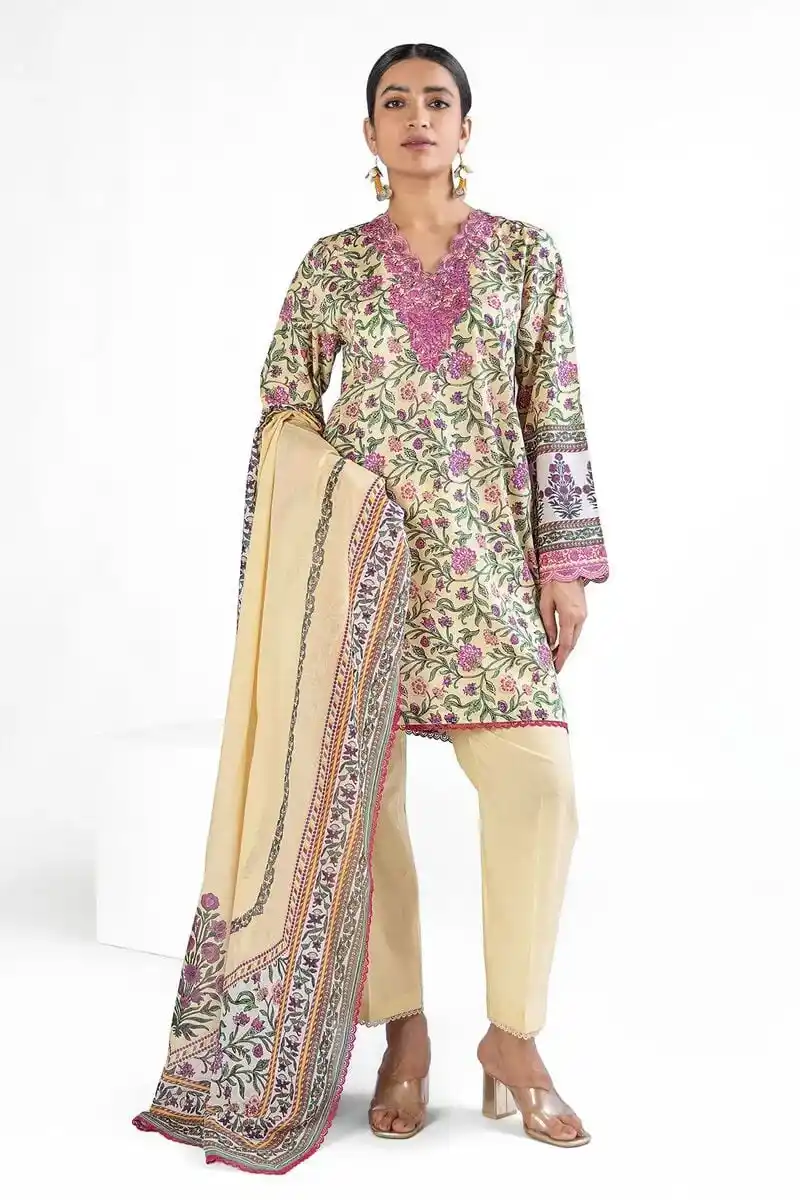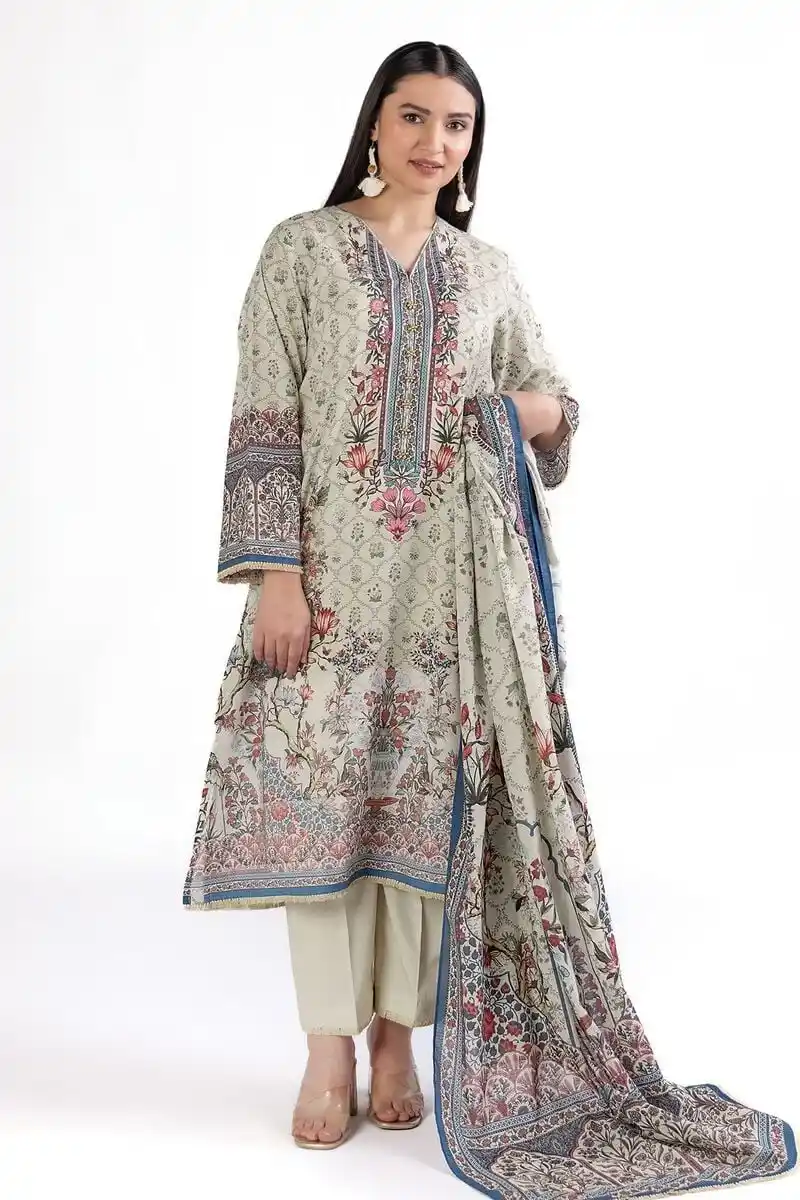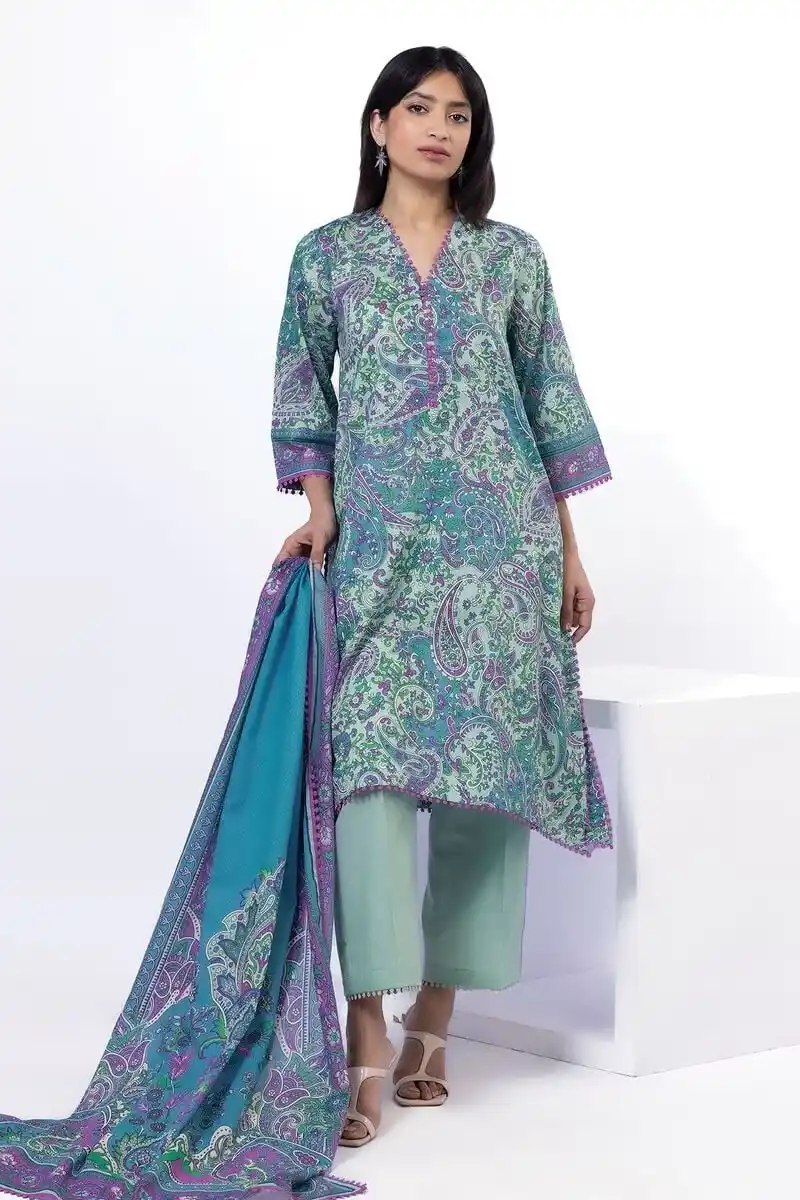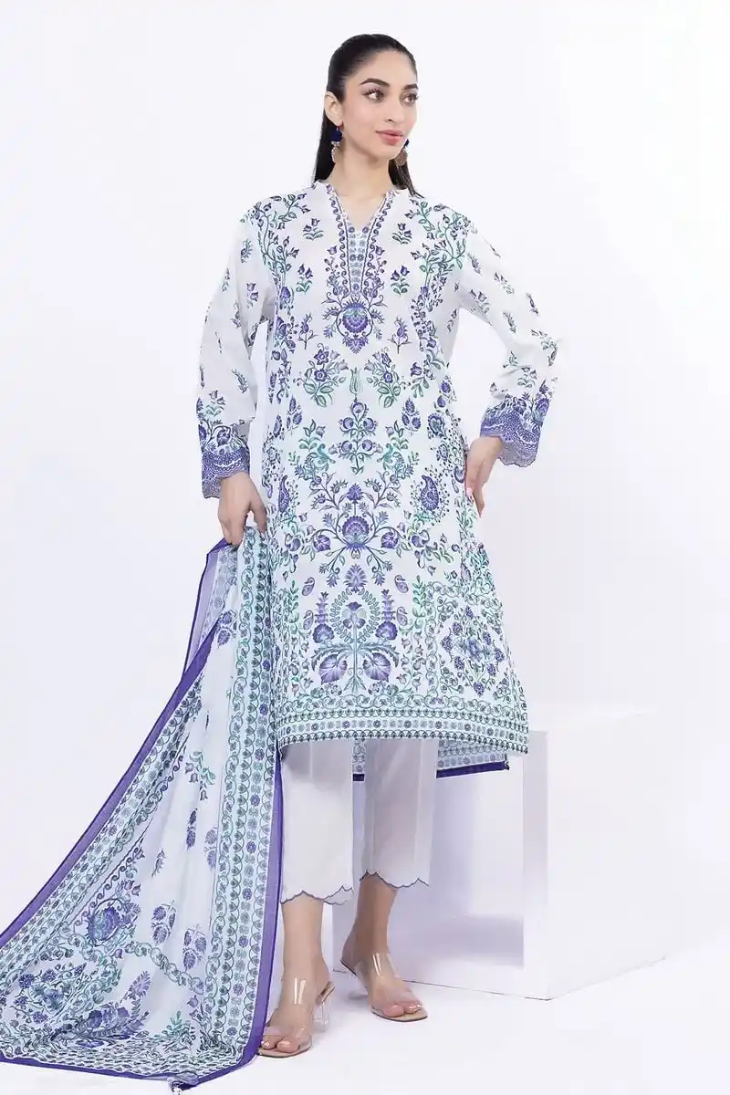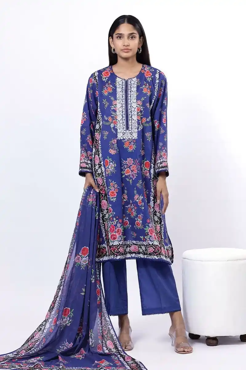 Lawn embroidered digital printed 3-piece suit PKR:4,500 only.