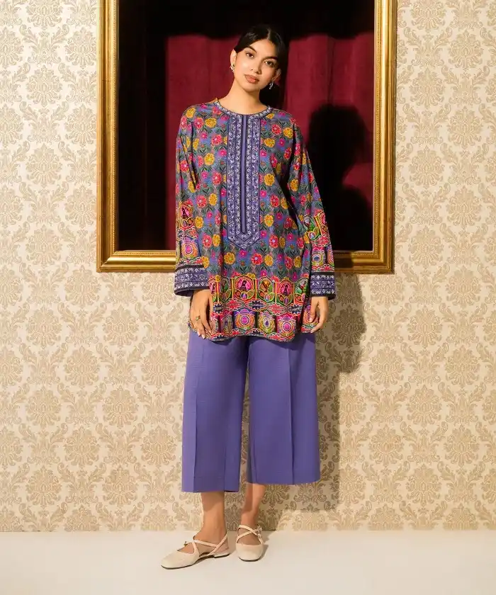 Lovely purple color 1pc printed khaddar ready-to-wear shirt Rs:3,590 only.