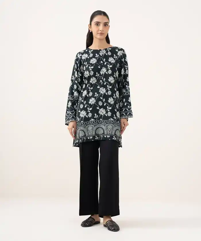 Black linen 1pc printed ready to-wear shirt Rs:2,990.