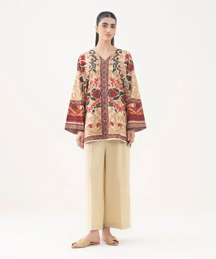 Printed cotton viscose brown color 1pc shirt for women Rs:3,790 only.