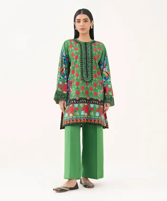 Get a graceful winter look with this green printed khaddar light khaddar 3pc suit Rs:5,190 only.