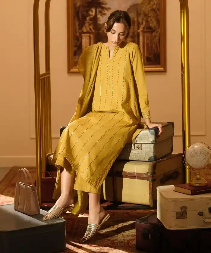 Let’s buy a graceful winter khaddar mustard color shirt Rs:3,590 only.