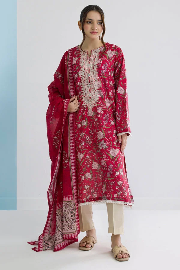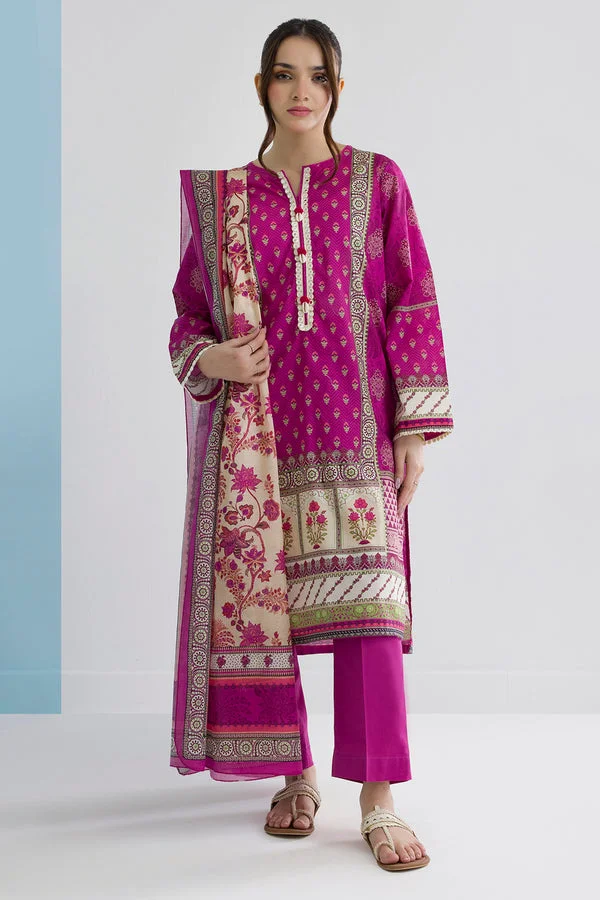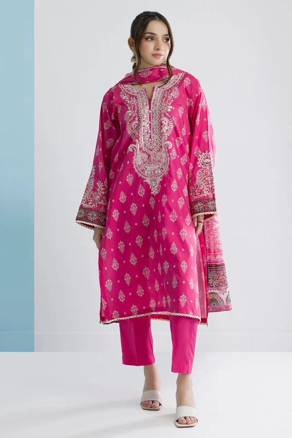 Hot pink color traditional style 3 piece summer lawn ready-to-wear suit Rs:3,990.