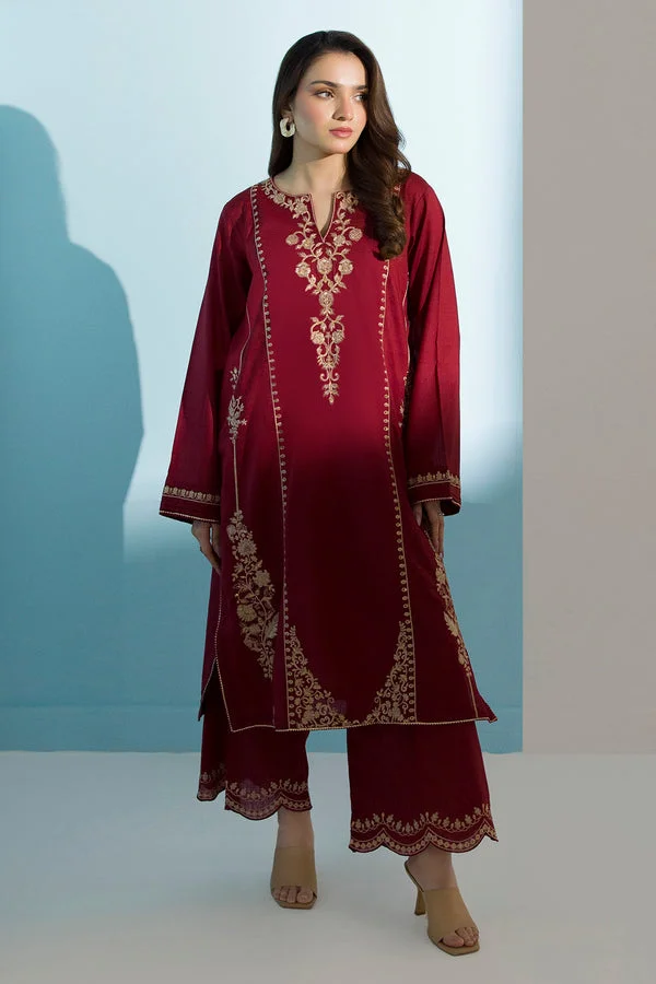 Experiance effortless elegance in this red color 3 piece lawn fabric maroon color suit Rs:3,990.