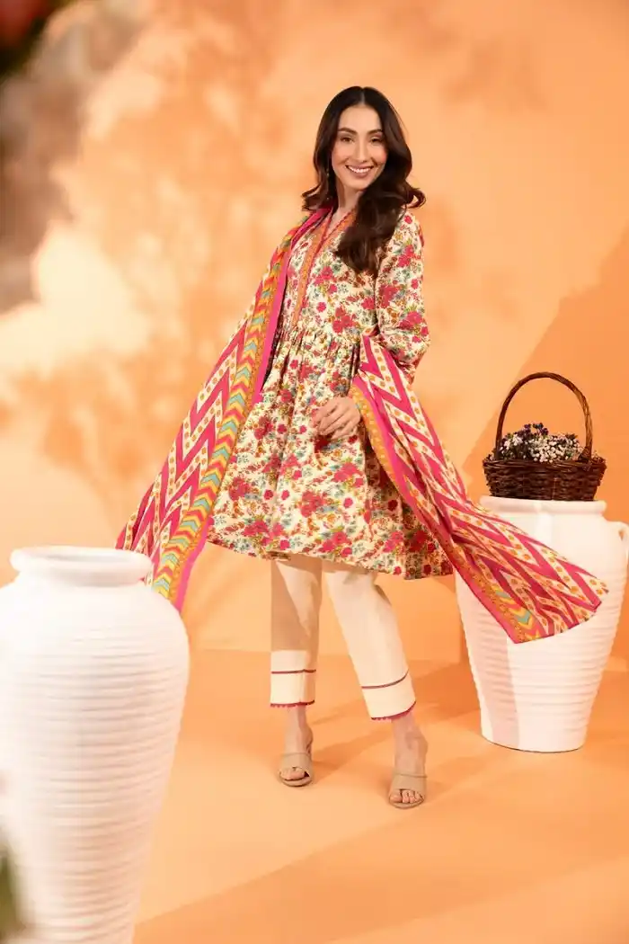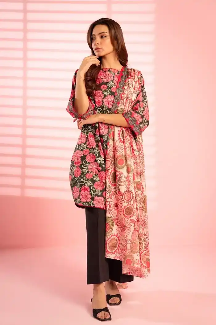 Pink floral printed lawn suit with lawn dupatta PKR:4,590 PKR:3,213 only.
