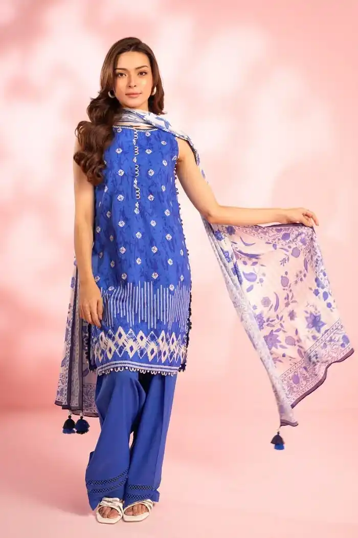Blue 3 piece printed lawn unstitched suit PKR:4,590 PKR:3,214 only.