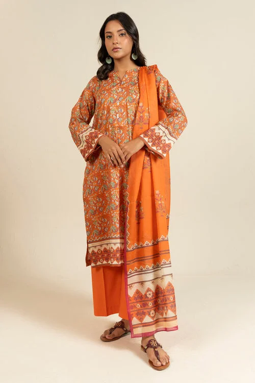 Stylish orange color printed lawn unstitched 3pc suit PKR:4,790 PKR:2,874 only.