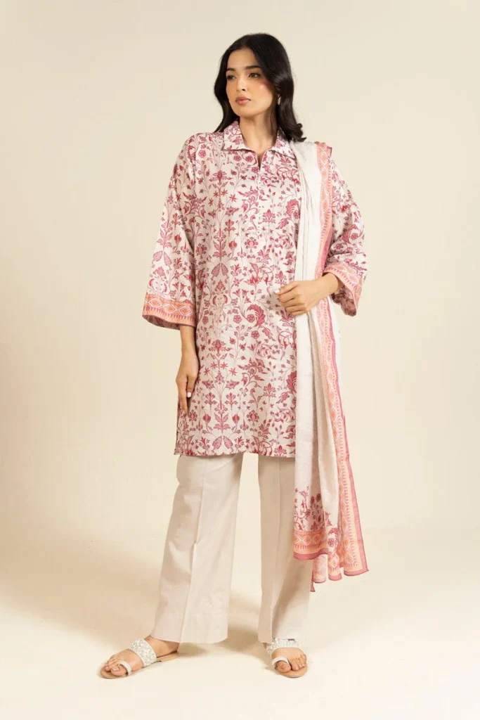 Pink color floral printed lawn 3 pc suit PKR:3,990 PKR:2,394 only.