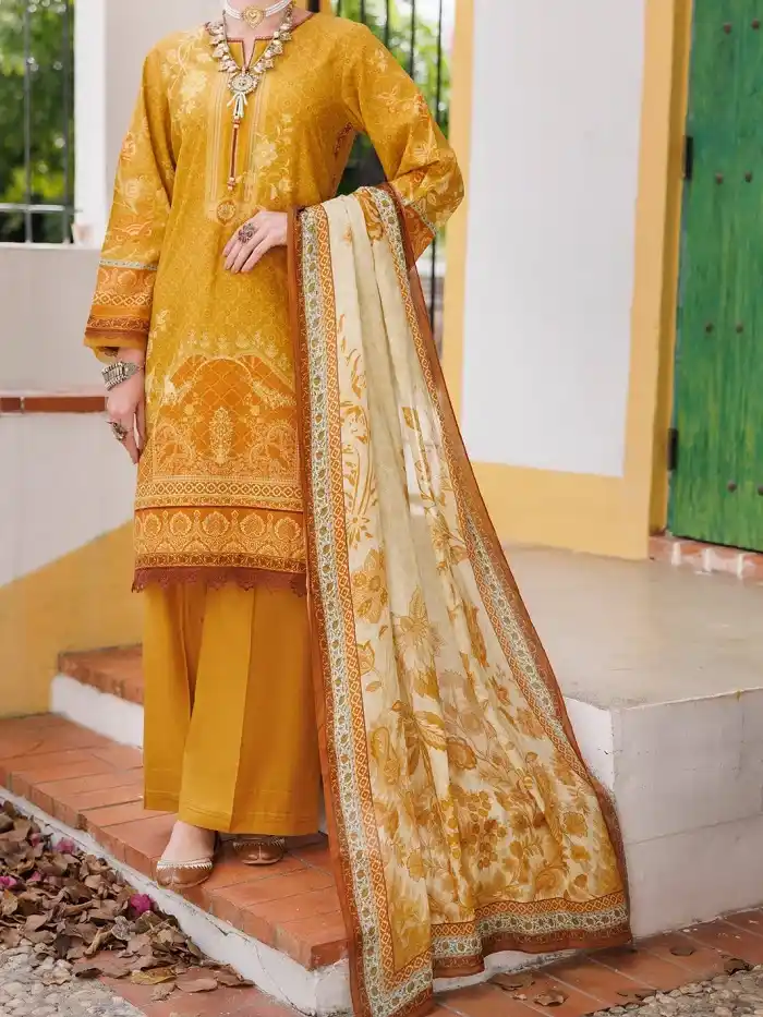 Stylish lawn digital printed mustard color unstitched suit Rs:6,450 Rs:3,225.