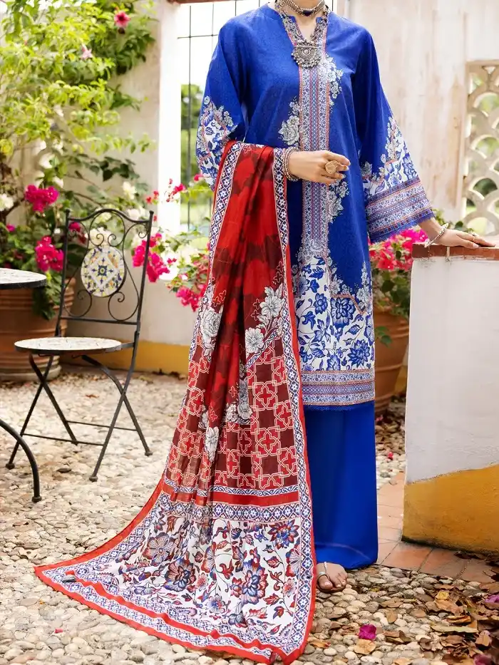 Blue lawn 3pc unstitched Rs:5,450 Rs:3,270.