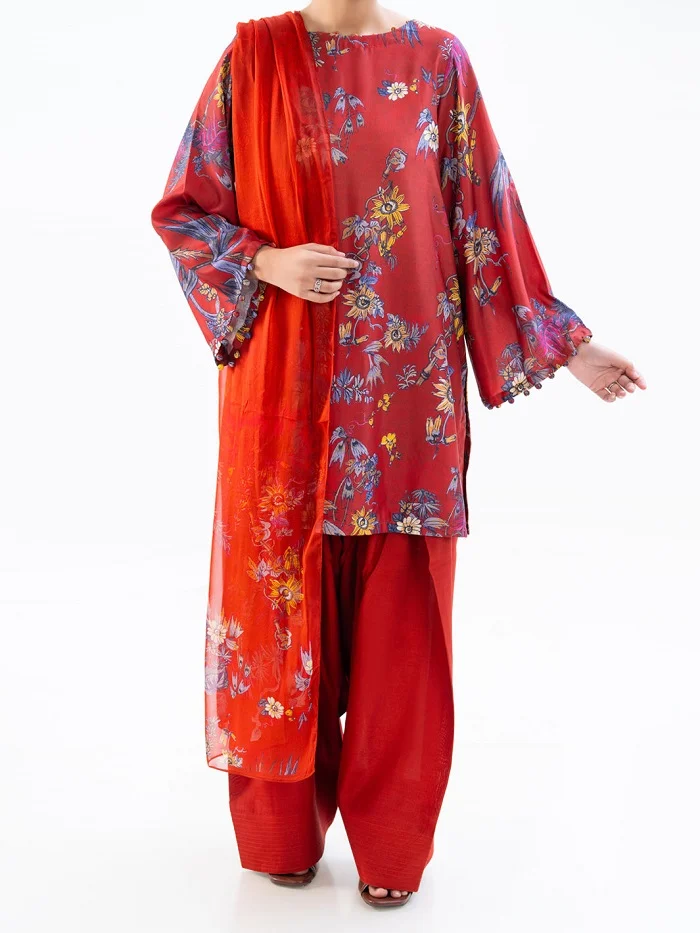 Let’s get a unique look this summer by wearing this rust color lawn 2-piece suit Rs:4,950Â only.