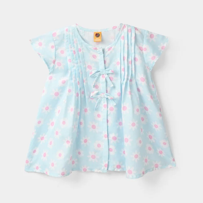 Girls cotton poplin embroidered summer kurti pleated Rs:2,495.