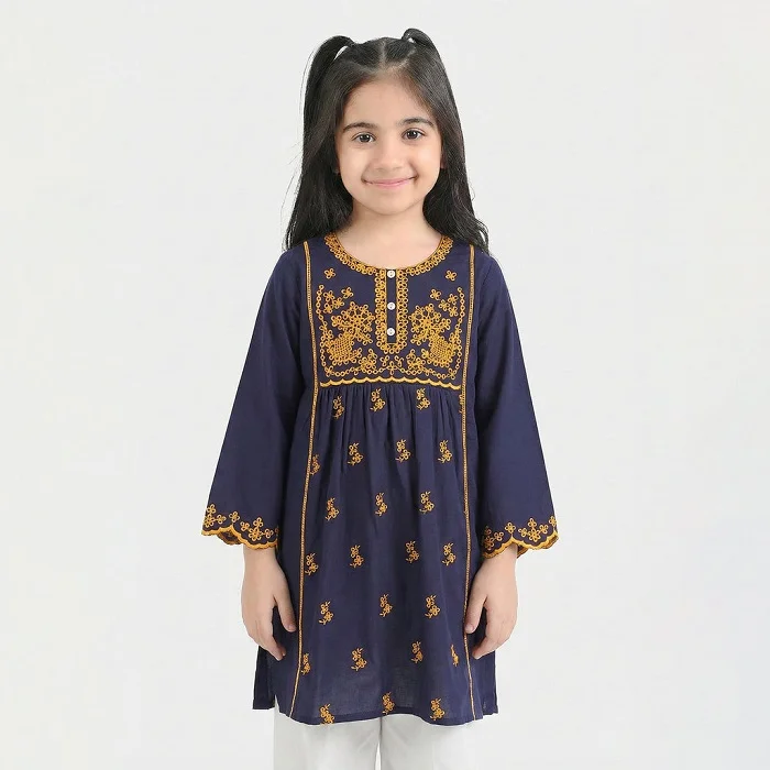Girls wear cotton embroidered kurti navy blue color available for Rs:2,695.