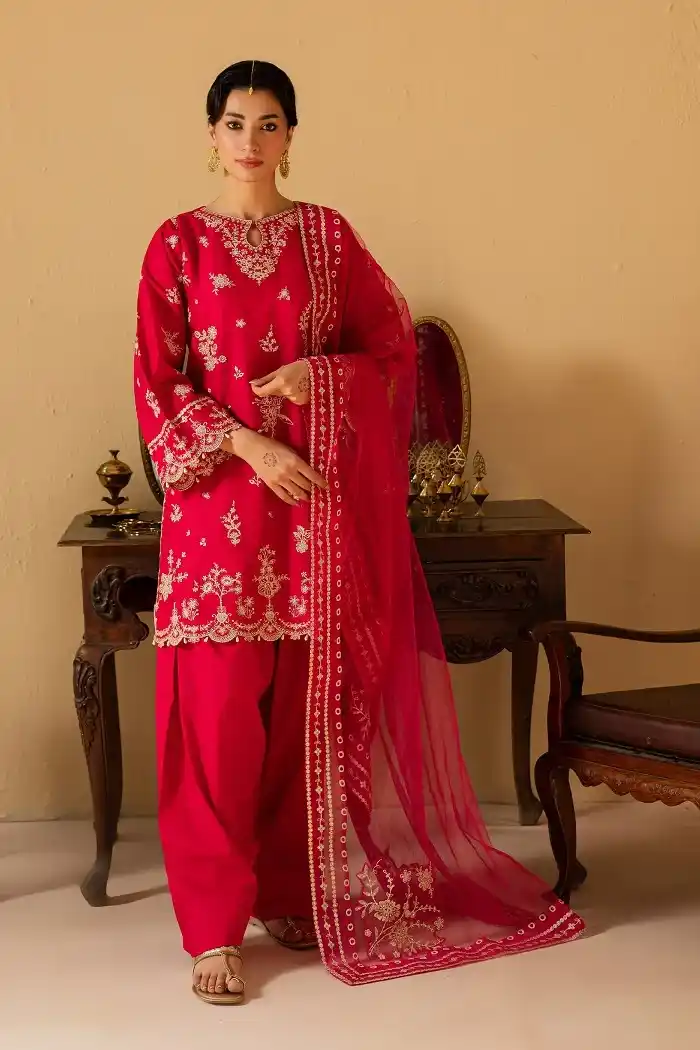 Stitched 2-piece lawn red color suit PKR:6,490 only.