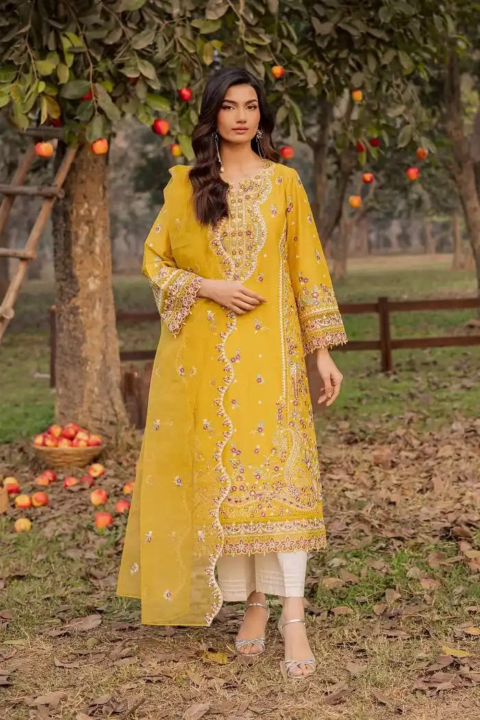 Festive embroidered lawn 3 pc suit avilable for Rs:15,990.