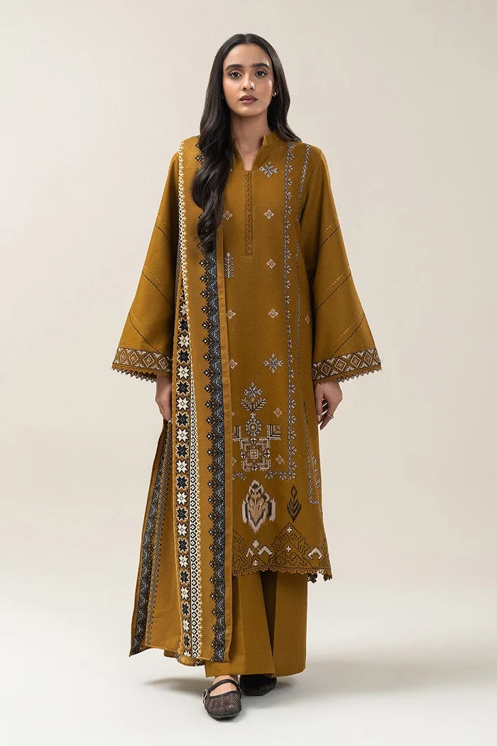 Beige color 3 piece embroidered khaddar suit Rs:5,490 Rs:4,118.
