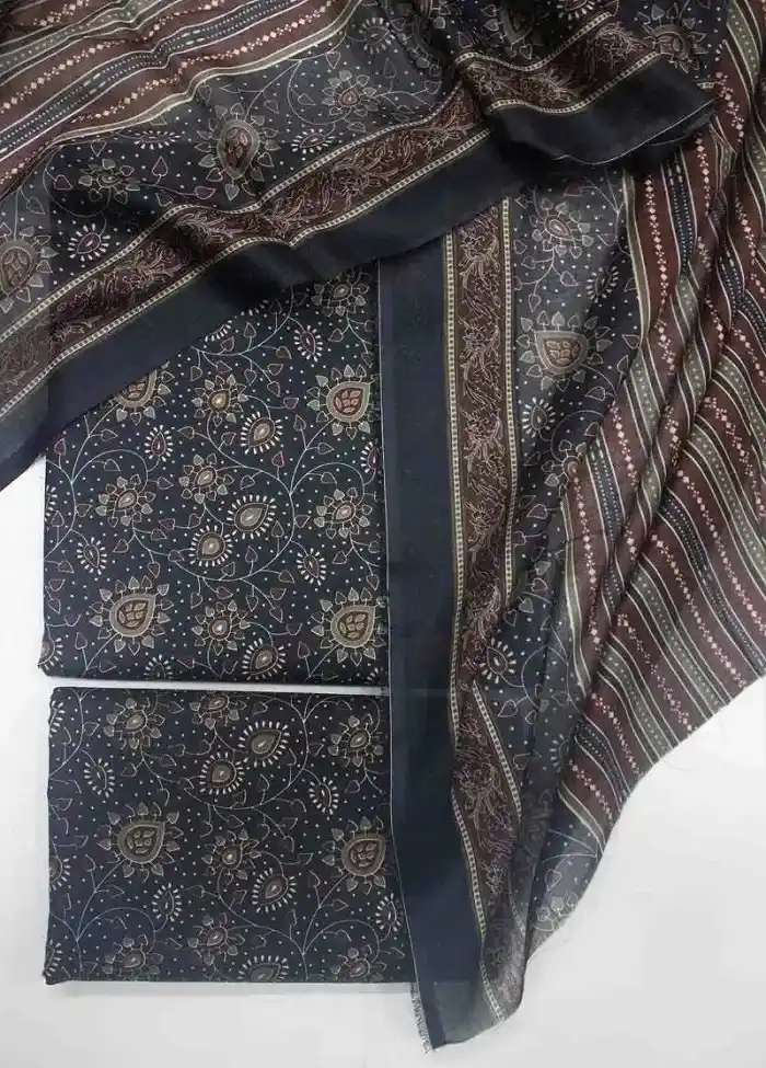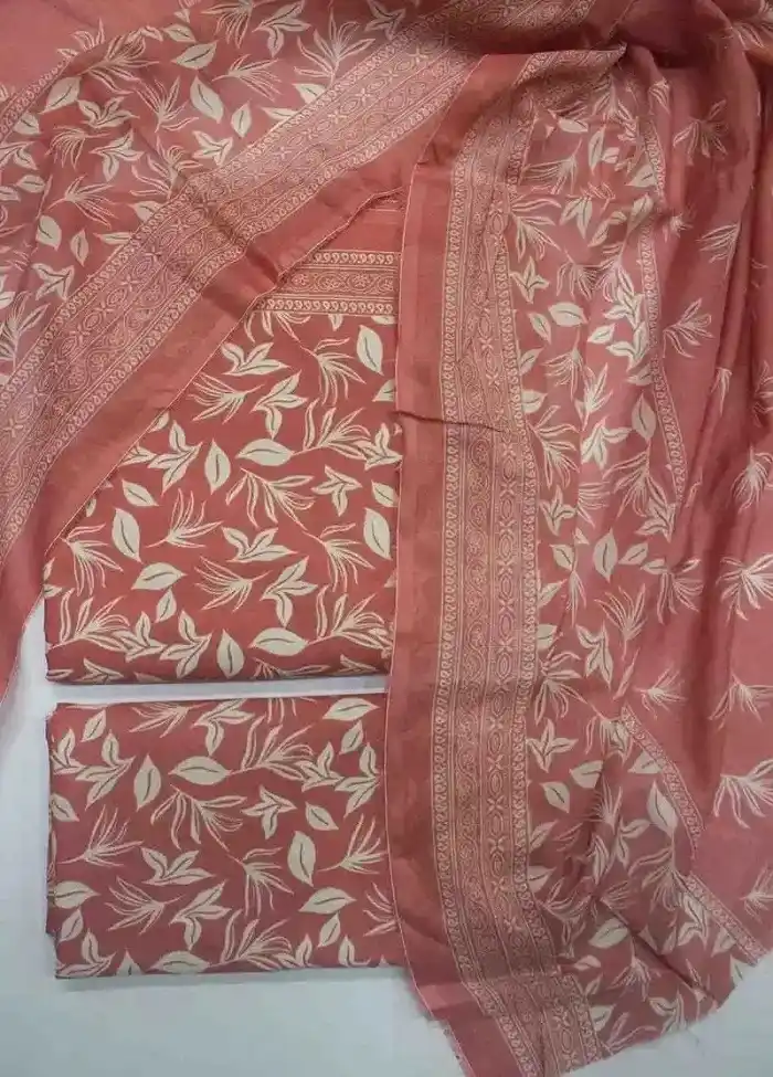 Stylish 3-piece printed cotton unstitched suit available for Rs:3995 Rs:2.995 Only.
