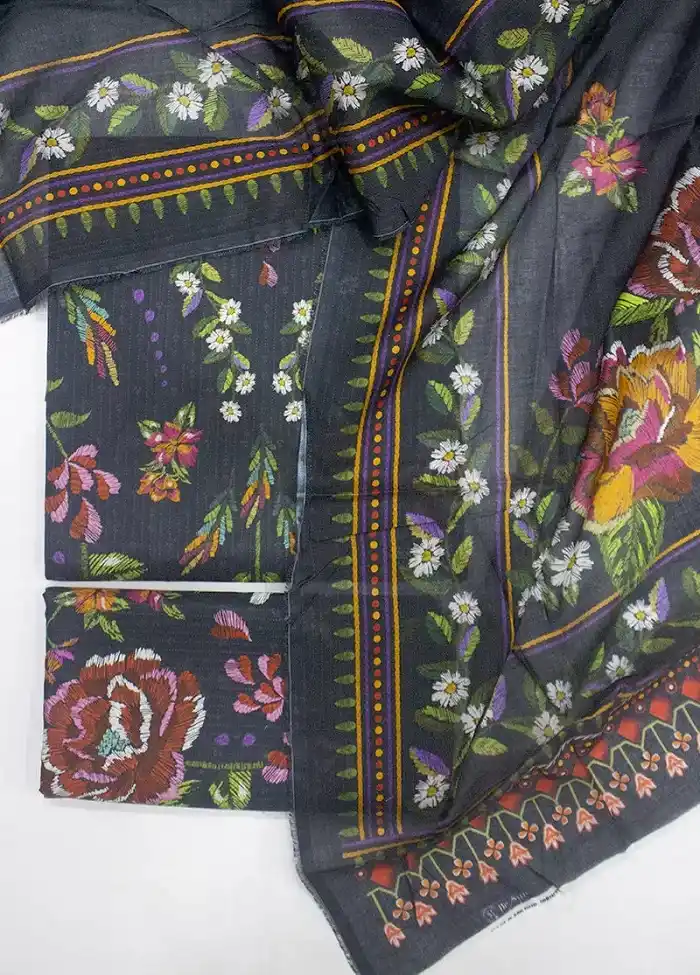 3 piece black color embroidered lawn unstitched suit PKR:5,495 Rs:4,946.