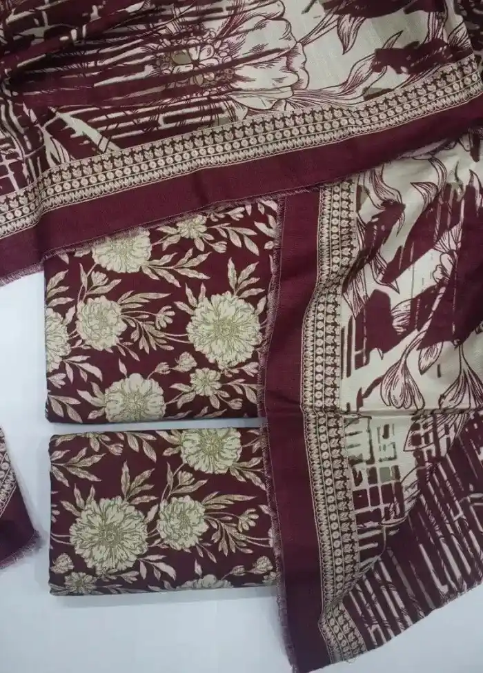 Maroon floral digital printed cotton fabric 3 piece suit Rs:2,995.