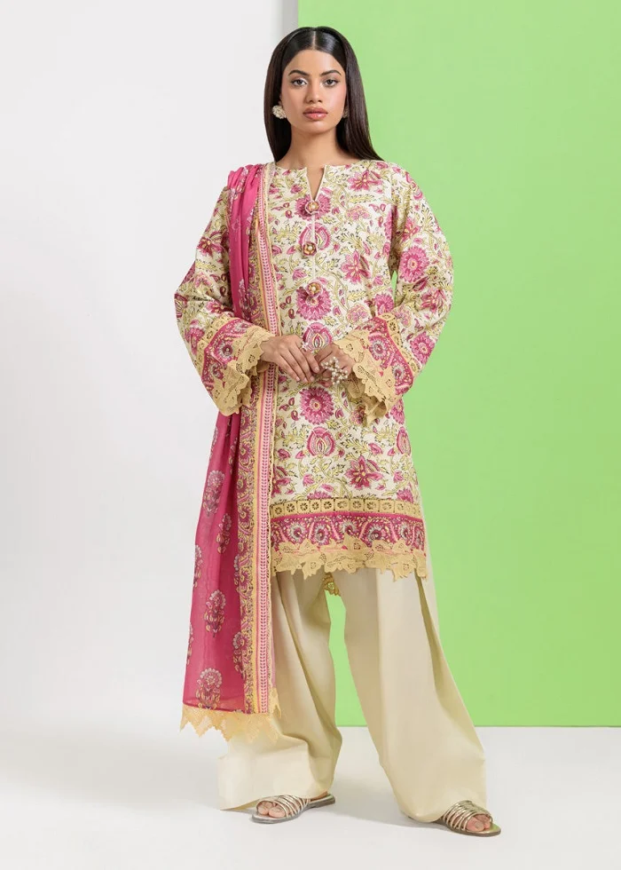 Cream lawn 3-piece unstitched suit PKR:4,290 PKR:3,432.