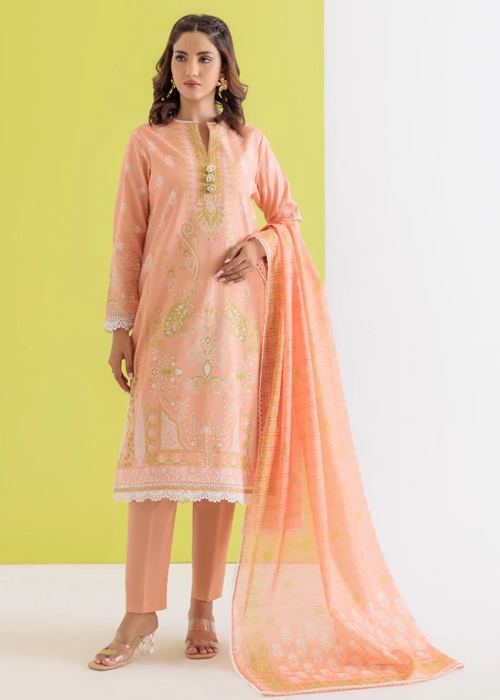 L-Peach color lawn 3-pc unstitched suit PKR:5,580 PKR:3,627 save 35% now.