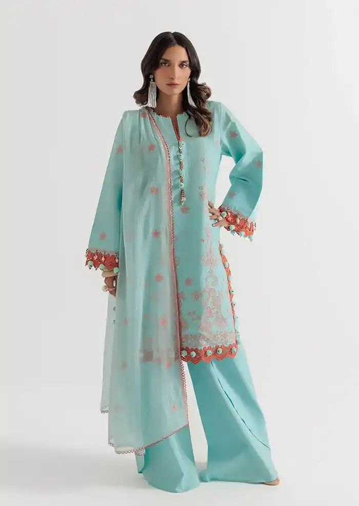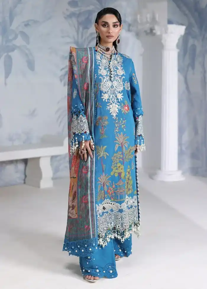 Stylish blue color eid festive wear 3pc embroidered jacquard suit Rs.:12,690 Rs:6,345 only.