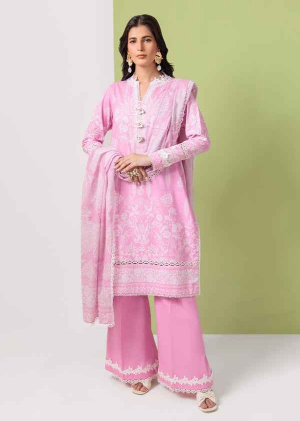 Stylish pink color embroidered lawn unstitched three-piece suit Rs:7,880 Rs:6,304.