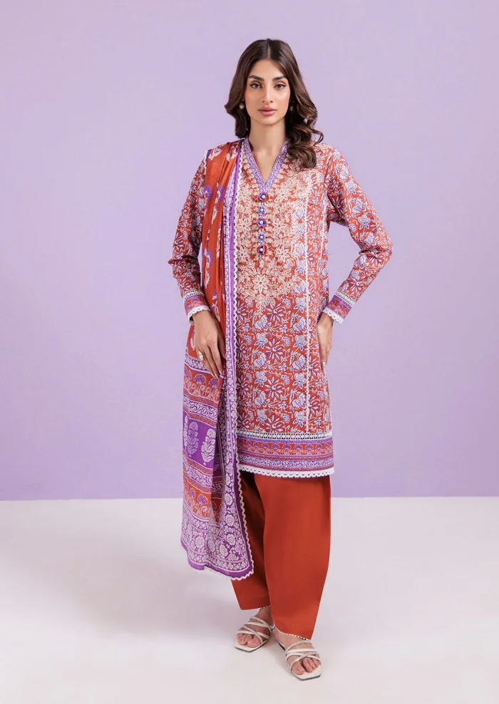 Purple color 3-piece lawn suit PKR:4,490 PKR:3,143 only.