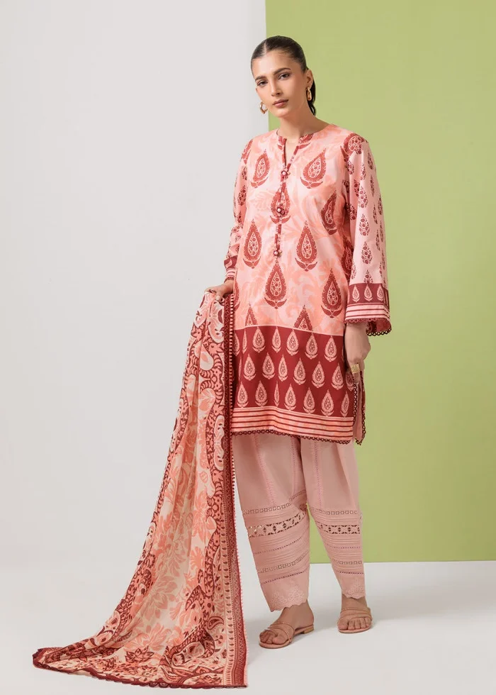 Light peach color digital printed lawn unstitched 3pc suit PKR:4,690 PKR:3,283 only.