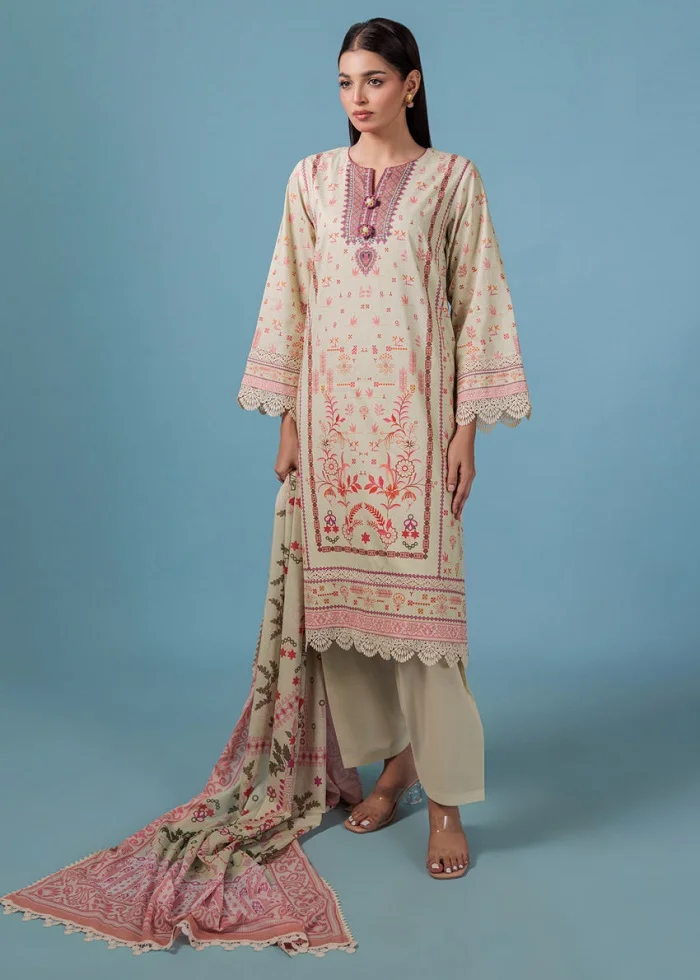 3-pc beige color unstitched lawn summer suit Rs:4,380 Rs:3,504 only.