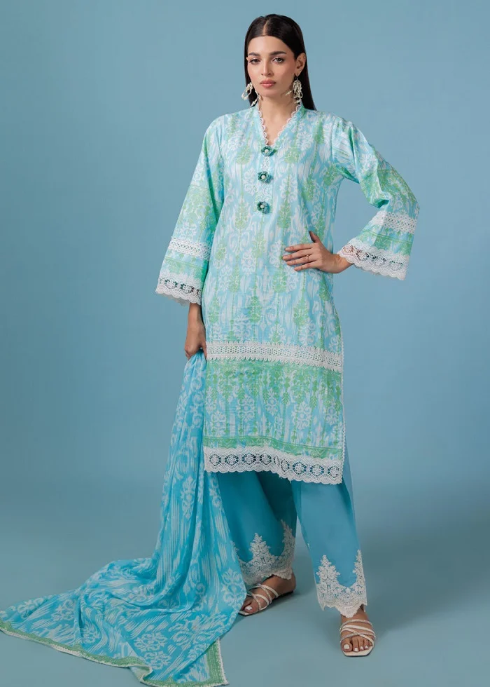 Unstitched blue lawn 3pc suit Rs:4,280 Rs:3,424 only.