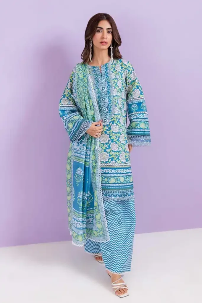 Lovely Blue color summer lawn unstitched 3pc suit PKR:4,280.
