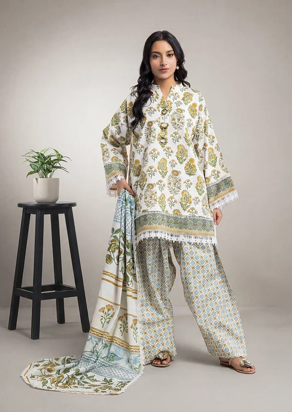 Unstitched off-white printed lawn 3piece suit Rs:3,290.