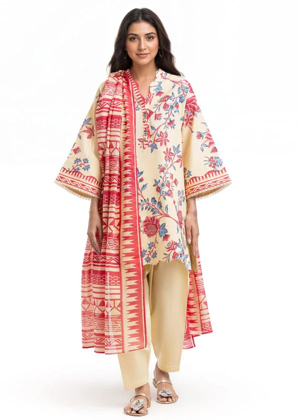 Rs:3,290 Beige Color Lawn Fabric Unstitched 3-PC Suit.