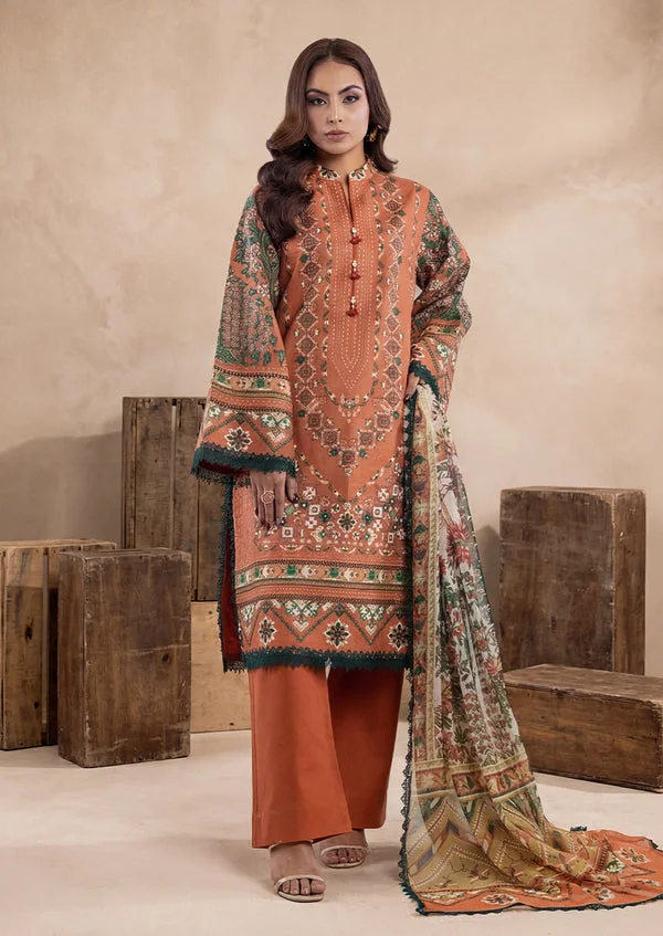 Brown color 3 piece unstitched lawn suit Rs:3,690