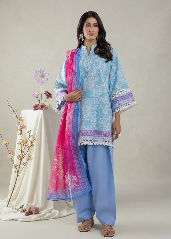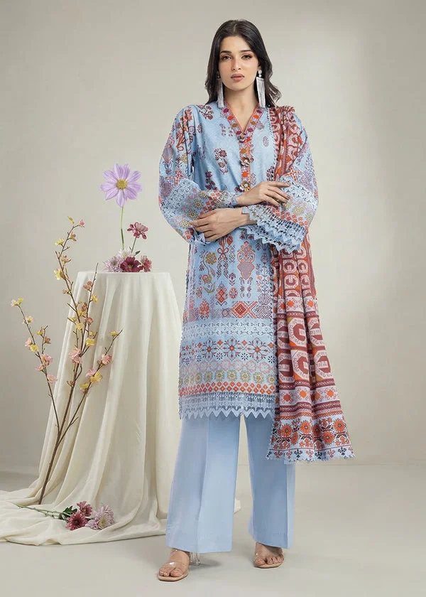 Lovely sky blue color 3 pieces lawn printed unstitched suit Rs:2,890 only.