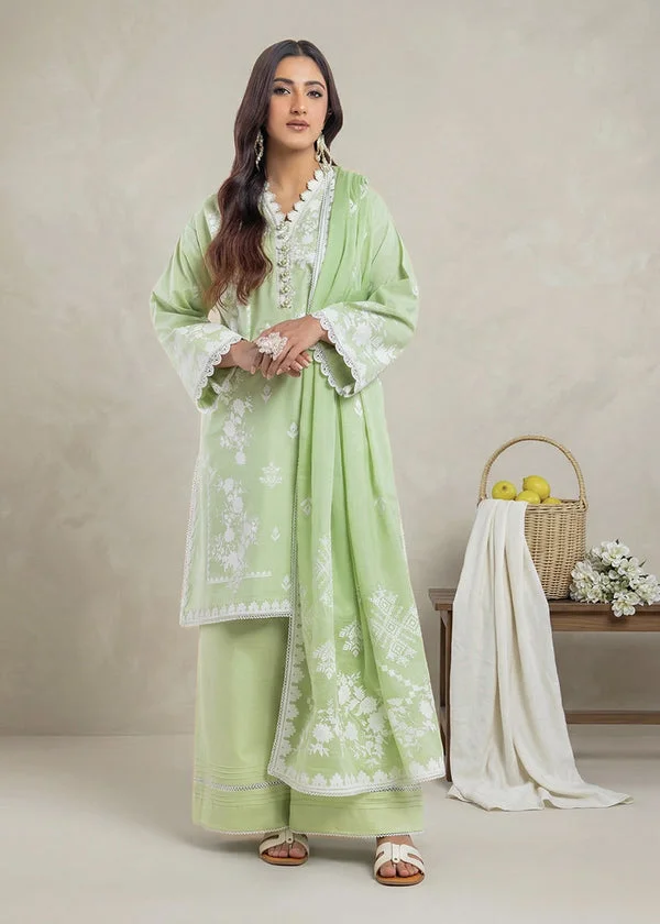 Floral printed lawn 3pc light green color suit with lawn dupatta Rs:6,990.