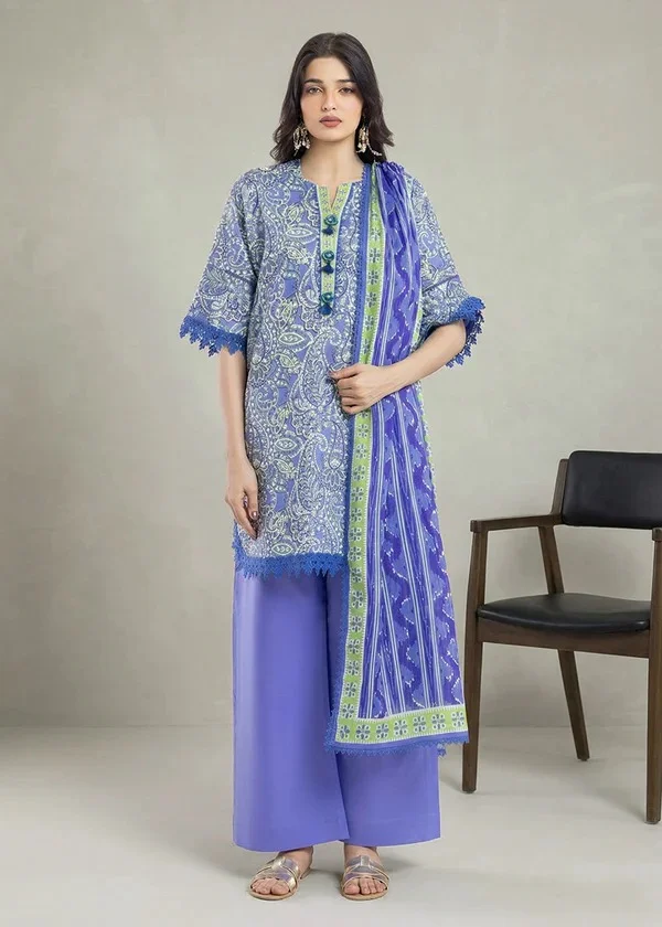Digital printed lawn 3piece blue color unstitched suit Rs:3,290.