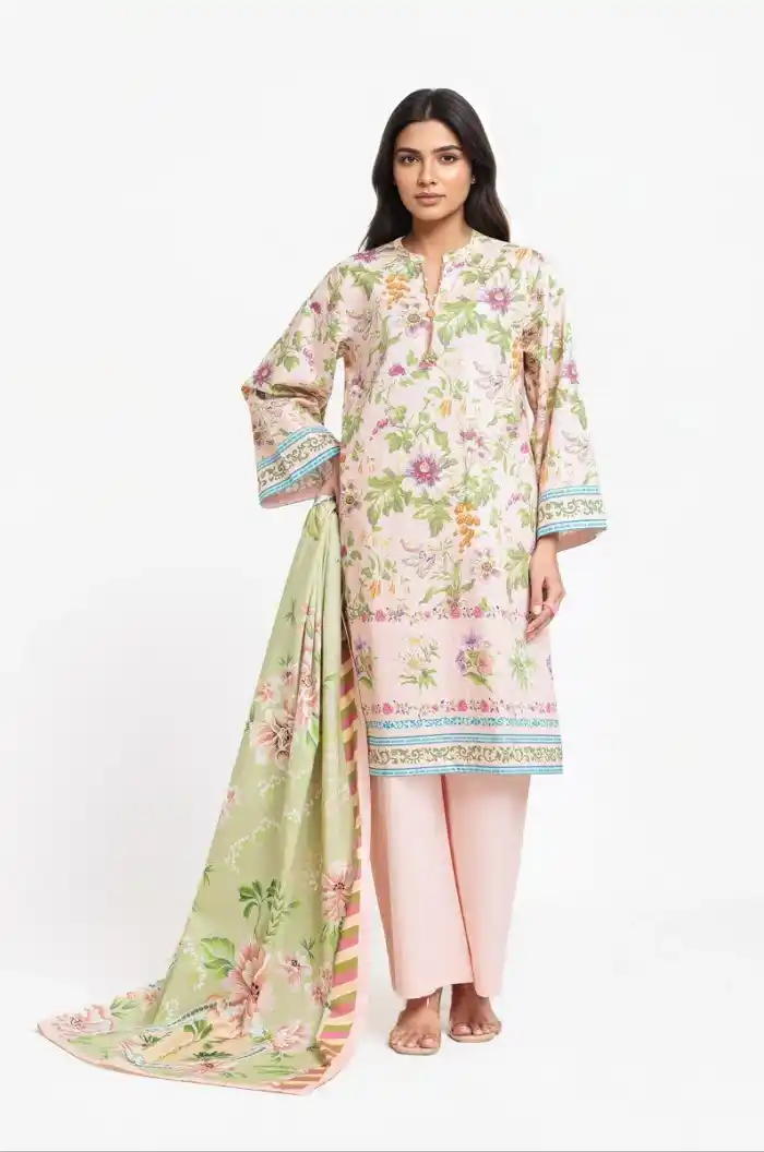 Rs:3,480 Rs:2,088 3-piece pink khaddar suit.