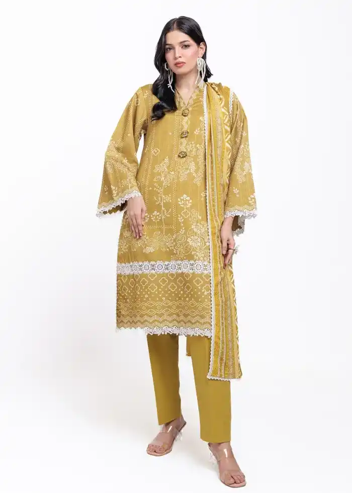 Mustard paper cotton embroidered 3-piece suit PKR:6,580.