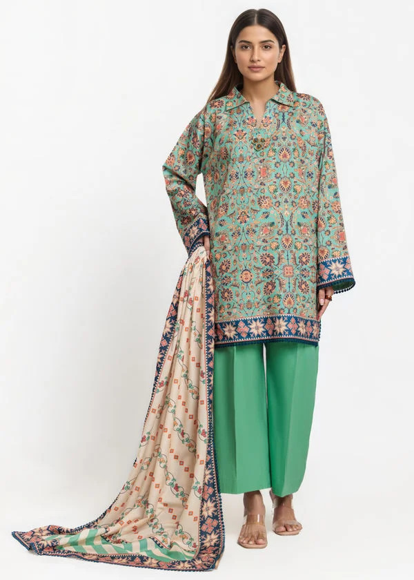 Green color floral printed 3pc light khaddar suit Rs:3,290.